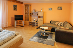 Als nächstes stellen wir Ihnen das Wohnzimmer vor. Es lädt mit seiner Größe und seiner Gemütlichkeit ein, erholsame Abende zu verbringen, auch wenn das Wetter mal nicht so schön ist.